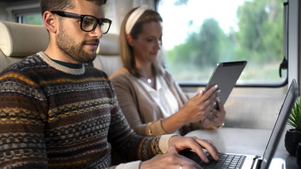 Интернет работает прямо в пути. Пассажиры заходят в сеть и пользуются мессенджерами, видео и почтой даже там, где мобильная связь обычно пропадает.