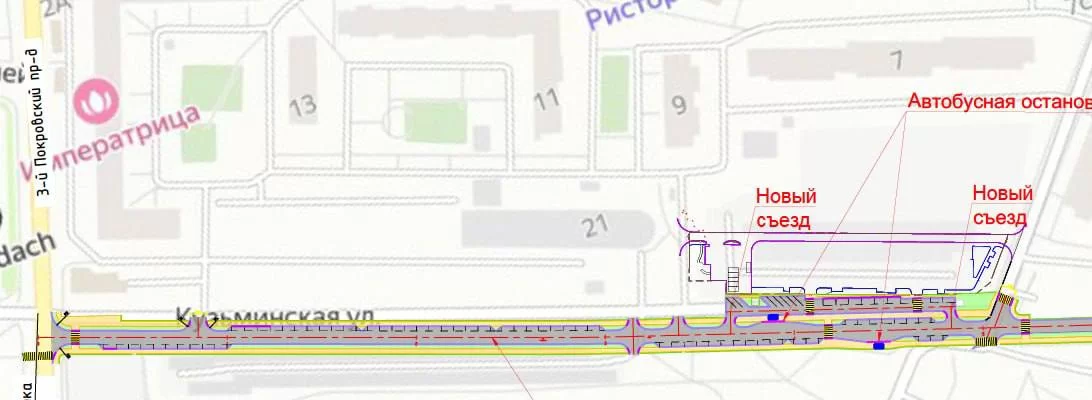 • строительство нового участка протяженностью 600 метров, который пройдёт вблизи жилого комплекса «Котельнические высотки»;