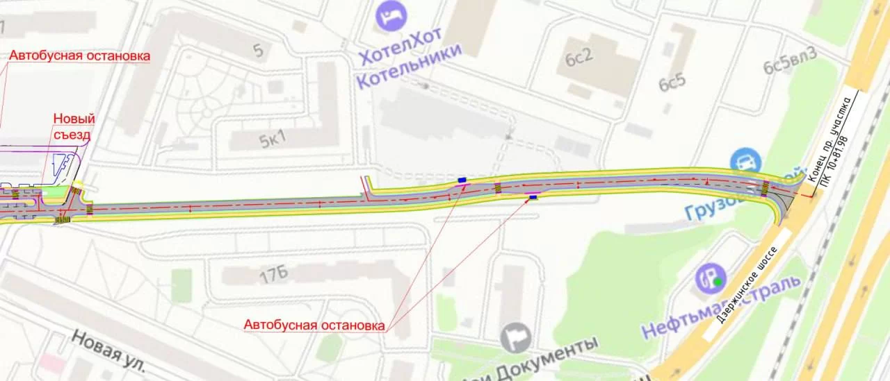 В настоящее время, по словам Михаила Соболева, подрядная организация выполняет вынос инженерных коммуникаций из зоны строительства на первом участке — от Дзержинского шоссе до многоквартирного дома по улице Кузьминской, 5.