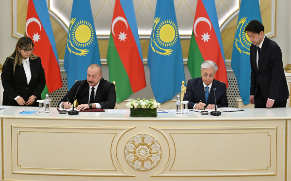В целом, в рамках государственного визита Президента Азербайджана в Казахстан было подписано 15 документов о сотрудничестве в сферах энергетики, транспорта и логистики, цифровизации и искусственного интеллекта, промышленной безопасности, здравоохранения и статистики, культурно-гуманитарных связей.