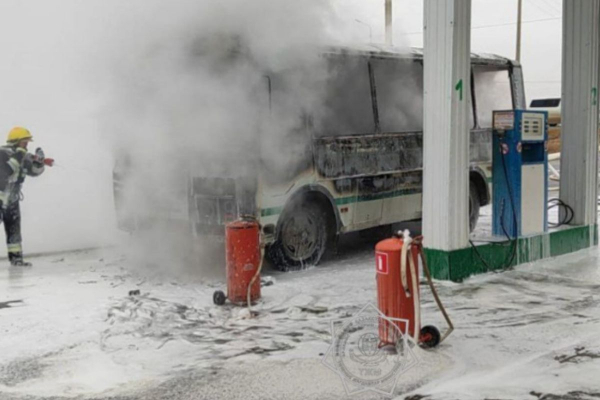 16 ноября на территории автозаправочной станции в посёлке Доссор Макатского района загорелся автобус.