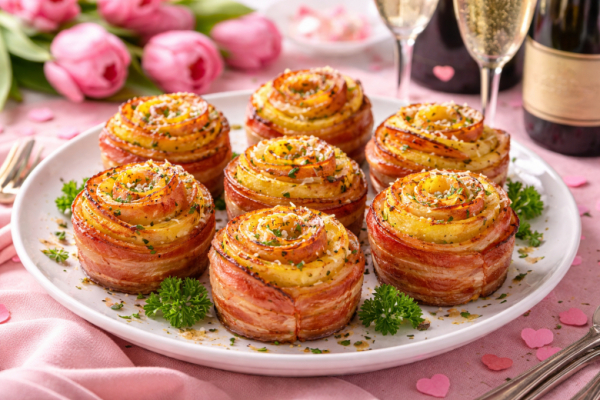 Если хочется удивить гостей красивой подачей и при этом не стоять часами у плиты — этот рецепт точно стоит сохранить. Картофельные «розочки» с беконом выглядят как ресторанная закуска, а готовятся из самых доступных ингредиентов. Блюдо отлично подойдёт для праздничного стола, семейного ужина и даже фуршета. А главное — выглядит дорого, а стоит совсем недорого.