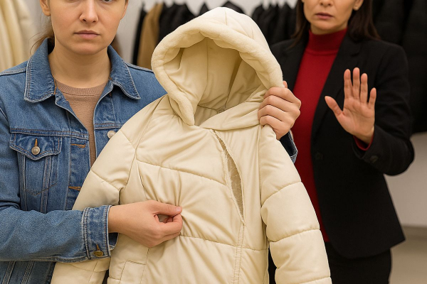 Уже через несколько дней швы на ней начали расходиться. Когда женщина пришла в магазин с просьбой обменять товар, продавец заявил, что всё произошло «из-за неправильной носки» и отказался возвращать деньги.