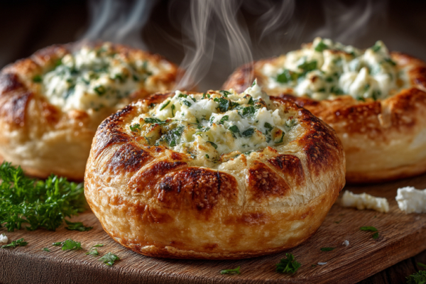 Секрет идеальной текстуры таких ватрушек — в том, чтобы начинка не пеклась, а томилась. Выключенная, но ещё горячая духовка за 10 минут не высушит творог, а нежно прогреет его, позволив сыру лишь слегка «подтаять» и сплавиться с зеленью. Результат — кремовая, почти суфлейная середина внутри хрустящей чесночной корзинки.