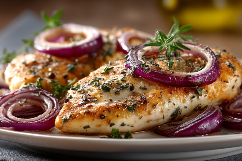 Вкус получается нежнейшим: курица пропитывается сладковатым луковым ароматом и пряными специями, оставаясь мягкой и сочной, а лук карамелизуется до золотистого цвета.