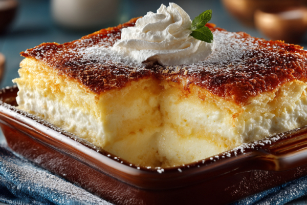 Духовку разогреваю до 180°C. Сливочное масло растапливаю и даю немного остыть. У 4 яиц отделяю белки от желтков, пятое яйцо добавляю целиком к желткам. Желтки с яйцом взбиваю с сахаром и ванилином до светлой пышной массы. Вливаю растопленное масло, снова взбиваю. Постепенно добавляю муку, продолжая взбивать до однородности. Вливаю тёплое молоко и хорошо перемешиваю — тесто получается жидким. Отдельно взбиваю белки до устойчивых пиков и аккуратно вмешиваю их в тесто венчиком или лопаткой. Масса остается жидкой. Форму смазываю растительным маслом, выливаю тесто. Выпекаю в разогретой духовке 40-45 минут. Можно по режиму: 20 минут при 180°C, затем ещё 20 минут при 150°C. Готовность проверяю зубочисткой. Даю немного остыть, посыпаю сахарной пудрой и подаю.